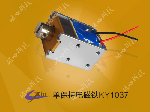 二、单保持电磁铁的原理:保持式电磁铁是有电磁铁线圈、永磁铁、铁芯、轭铁等组成,具有单向保持的功能,电磁铁在静止状态下是靠永磁特的磁力保持在一个位置,当电磁铁通正向电时,线圈产生磁场把电磁铁铁芯弹出(有弹簧保持在另外一个位置),再给电磁铁通方向电,电磁铁线圈产生磁场把铁芯吸到原来的位置。