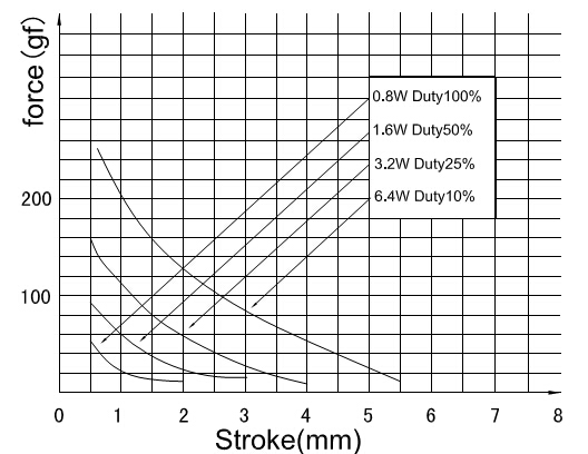 纵向:代表电磁铁在对应行程时的力量 单位为克(g)