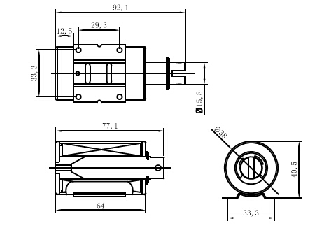 T3864圆管式推拉电磁铁带有安装支架,产品尺寸适中,行程20mm可以达到2KG的推拉力,T3864圆管推拉式电磁铁可以做成推式的和拉式的两种,产品主要用于自动化设备,大型机械设备和开关门锁类产品。推拉电磁铁具体描述如下: